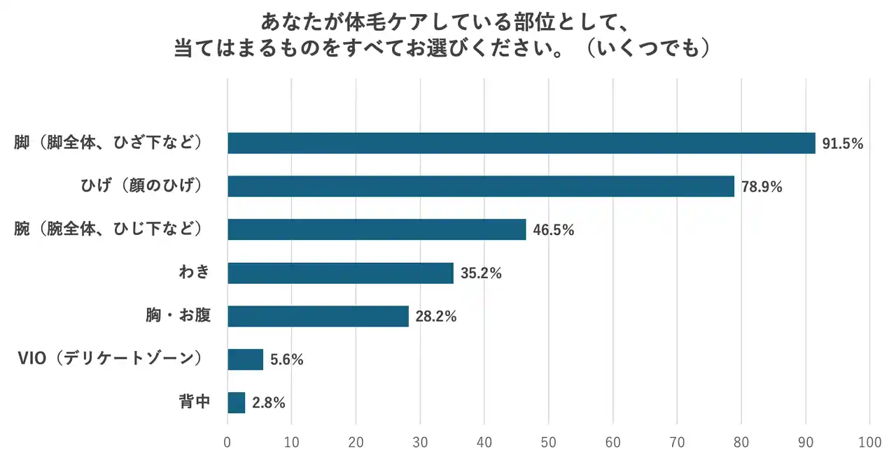 ・スポーツシーン×美容も定着──日焼け止めを塗る中高生男子は6割越えに 成人男性の間で一般化しつつある体毛ケアは、中高生男子においても浸透していることが明らかになりました。体毛ケアの実施率は全体の74.8%(n=103)にのぼり、そのうち「脚の毛」のケアは91.5%(n=103)と、最も高い結果となりました。また、体育や部活時に日焼け止めを塗る中高生男子は64.2%(n=288)と多く、理由として「日焼けはパフォーマンスにも影響するから」と回答した層が15.1%(n=185名)存在し、スポーツシーンの日焼けが集中力を削ったり、体力消耗につながるという実感から、日焼け対策をパフォーマンスケアの一環として捉える傾向もみられました。 |