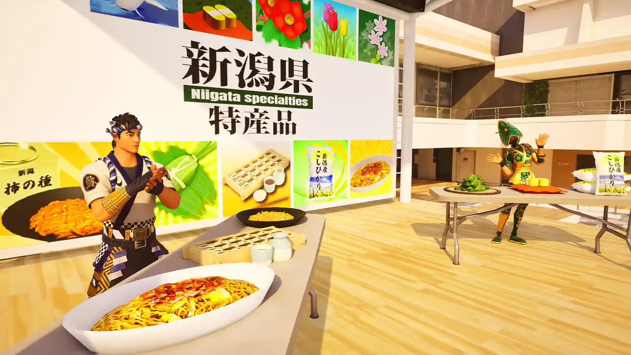 PLATEAUの3D都市モデルを活用し、街並みやランドマーク、特産品をゲーム内に再現しました。信濃川上には1v1建築バトル専用エリアを設置し、観戦イベントや大会と連動したeスポーツ体験が可能です。 |
