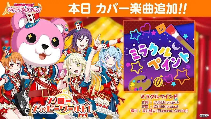 3.ハロー、ハッピーワールド!が歌うカバー楽曲『ミラクルペイント』を追加! |