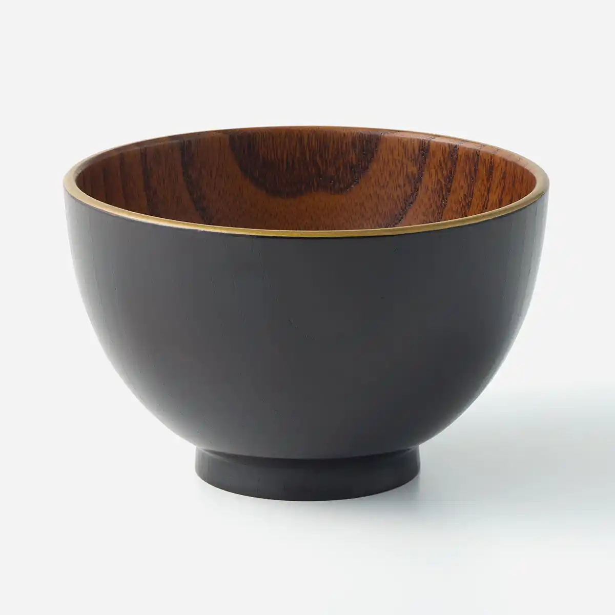 福島県会津若松市で作られた木椀で、外側にウレタン塗装と金色の縁を施し特別感を演出し、たっぷり入る形状でお雑煮に最適、普段使いにも煮込みうどんや海鮮丼に便利な持ちやすいサイズで、高台部分は水切れの良い滑らかな凹みを備えています。 |