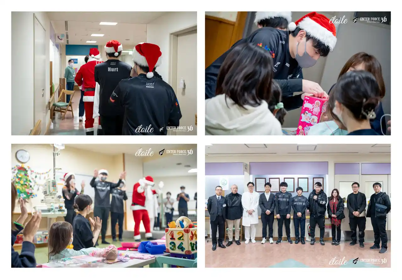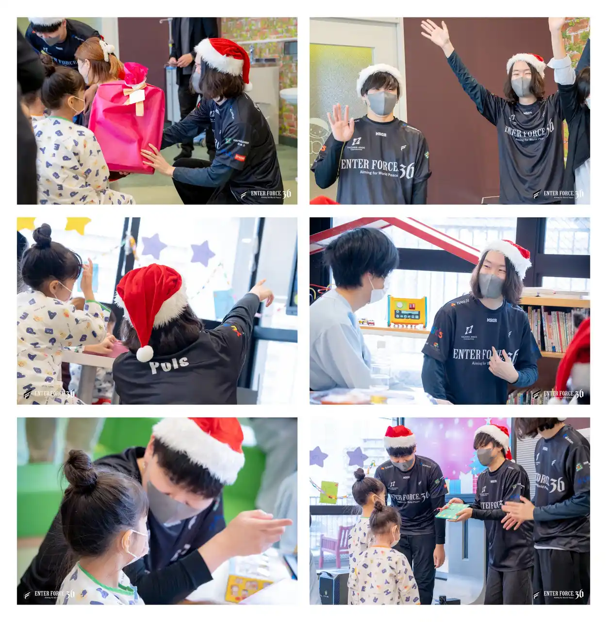 ENTER FORCE.36からは、Hurt選手、Dorap1n選手、Kota選手、ISKW選手、Chokol選手からクリスマスプレゼントを贈り、出歩くことが難しい子の病室にもサンタクロースとともにプレゼントを届けました。 |