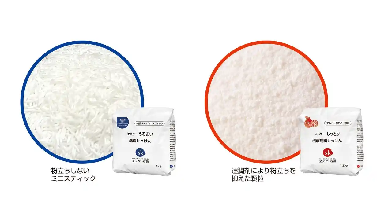 ヱスケー石鹸株式会社(東京都北区 五代目社長 倉橋 和良 以下エスケー石鹸)は、ストレスフリーな「うるおい洗濯せっけん」、「しっとり洗濯用粉せっけん」を2025年12月に新パッケージでリニューアル発売しました。通信販売、生活協同組合、自然食品店などのルートにて販売します。 |