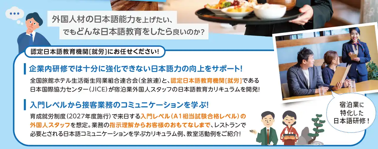 | 宿泊業外国人スタッフの日本語教育カリキュラムをご紹介します。 | |||