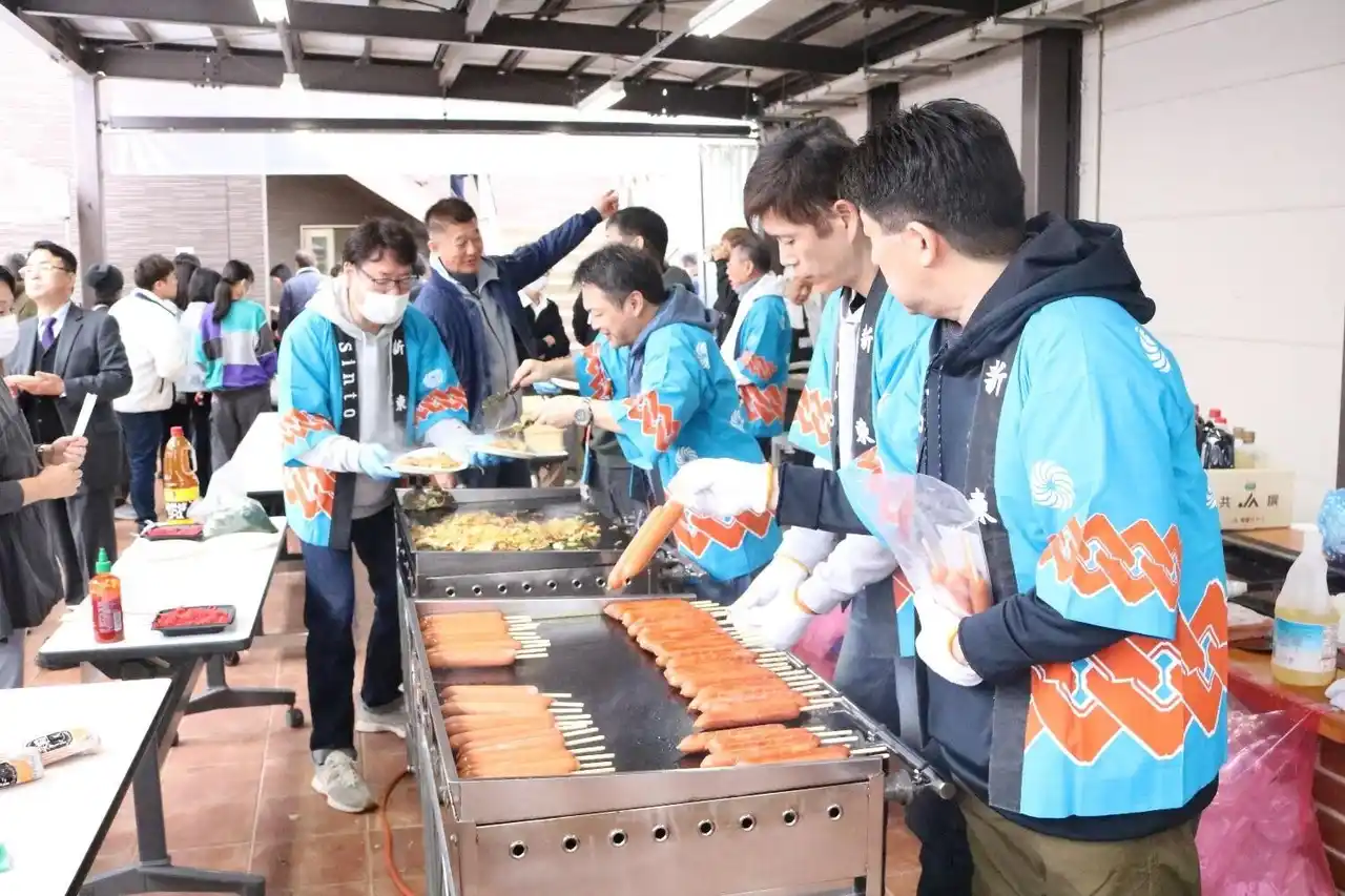 | この日は小雨が降るあいにくの天候になりましたが、役員、社員とご家族、協力会社、海外拠点役員など総勢520名が参加し、会場は熱気と笑顔に包まれました。つきたてのお餅やおしるこ、天ぷら、焼きそば、ピザ、フライドポテトやドリンク類の飲食類の提供が振る舞われ、和やかな雰囲気の中で、参加者がお互いに日頃の労をねぎらうとともに絆を深めました。当初予定されていた恒例の餅まきや菓子まきは雨で中止になったため、用意されていた餅や菓子はお土産として笑顔でお持ち帰りいただき、大盛況のベントとなりました。 | |||||||||