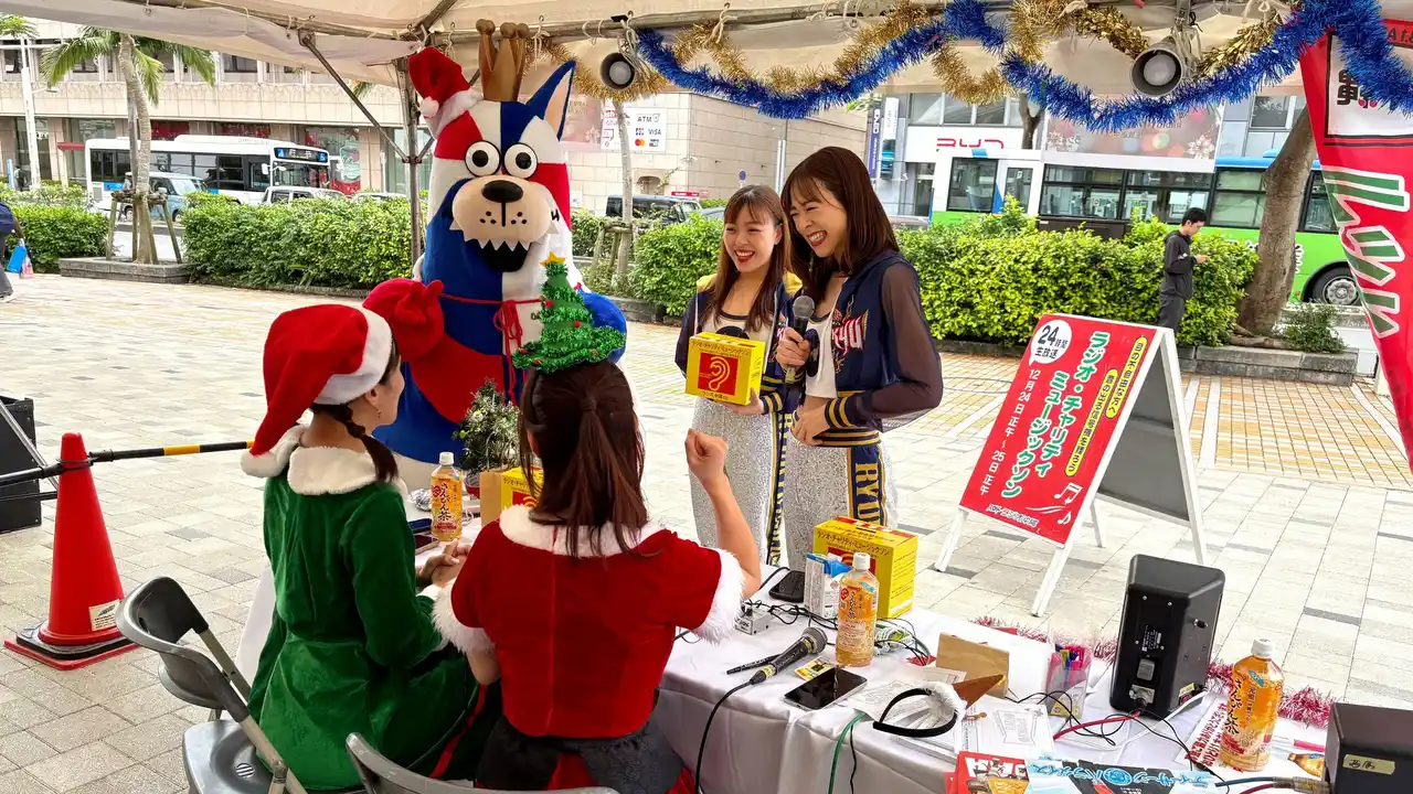 | イベント当日は、ゴーディーとキングスダンサーズが募金活動に参加いたしました。地域の皆さまと写真撮影や交流を楽しみながら、募金への協力を呼びかけたほか、ラジオの生放送にも出演し、募金活動の様子やキングスのホームゲームの情報をお伝えしました。募金にご協力いただいた方からは、「年末年始の試合、観に行きます!」、「いつも応援しています!」と多くの方に声をかけていただきました。 | |||
