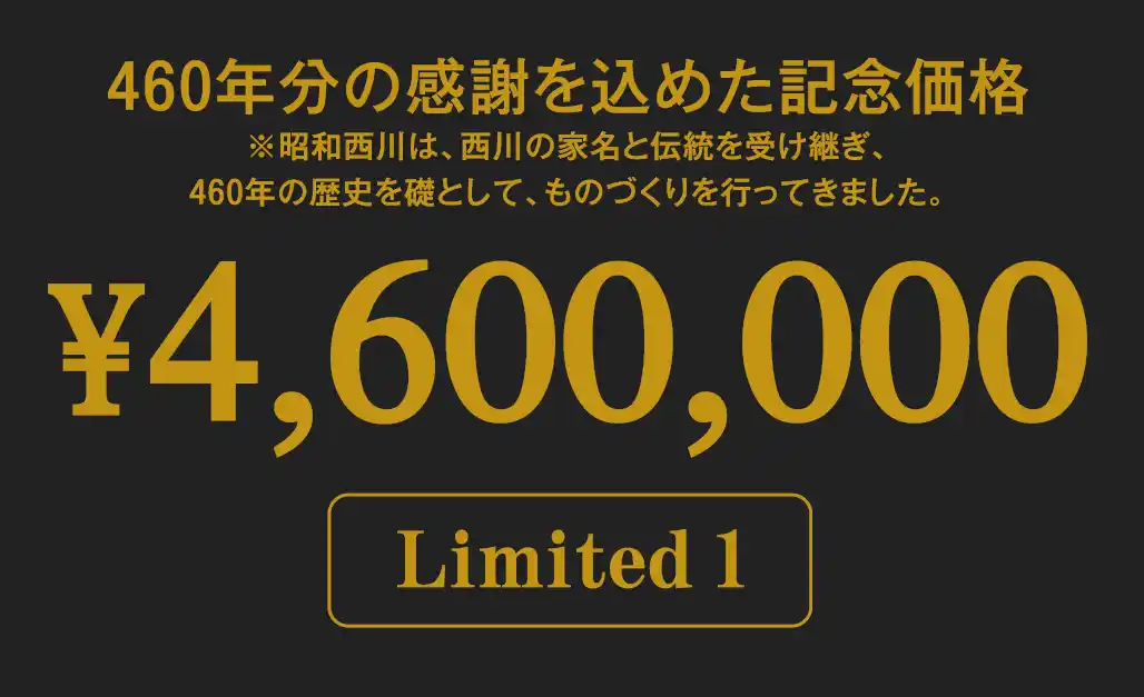 昭和西川記念日特別価格:840,000円/2,026,000円/4,600,000円(すべて税込) |