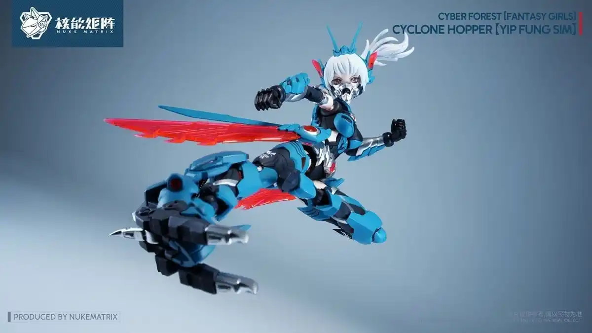 | NUKE MATRIX社企画・製作のサイバーパンク風プラモデルシリーズ「サイバーフォーレスト」より、静寂な樹海に佇み「サイクロンホッパー」の力を宿すストームチェイサー「サイクロンホッパー:イップ・フォン・シム」 が登場します。 | |||||||||