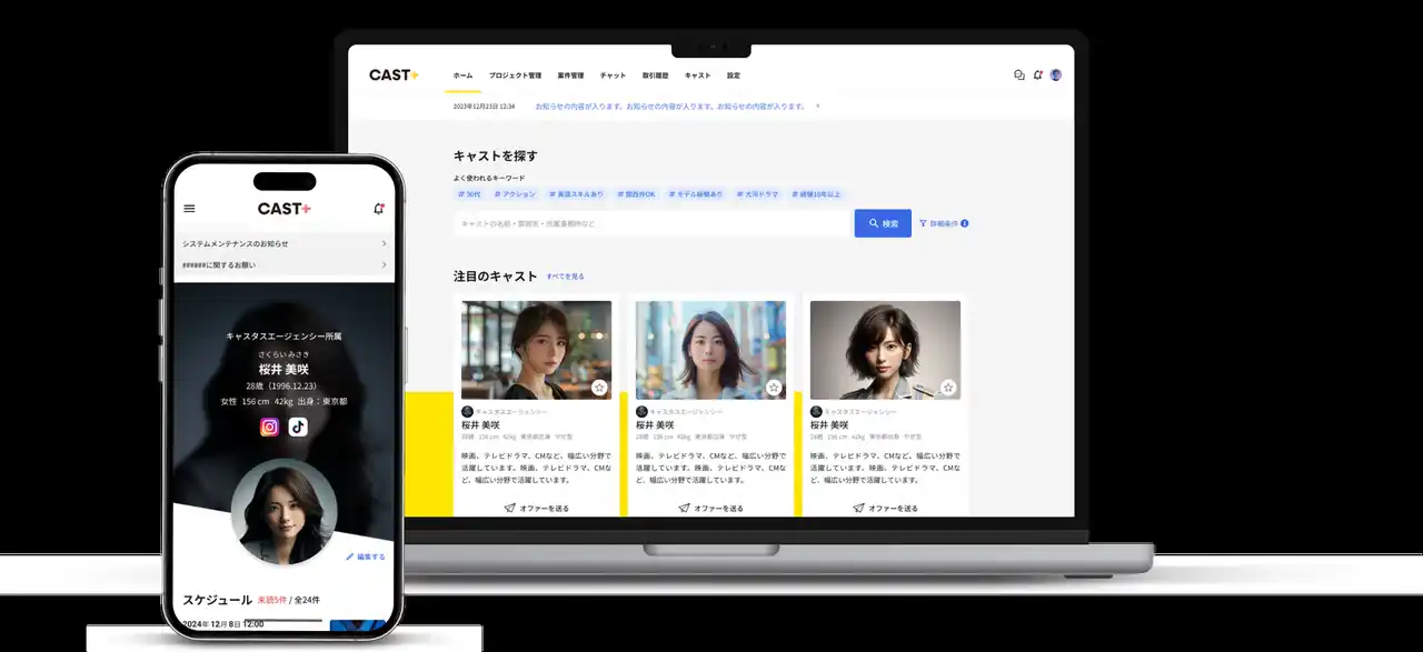 2025年9月にサービス提供を開始した「CAST+」は、制作会社・芸能事務所・キャストの3者をつなぐエンタメ業界特化型マッチングプラットフォームです。 |