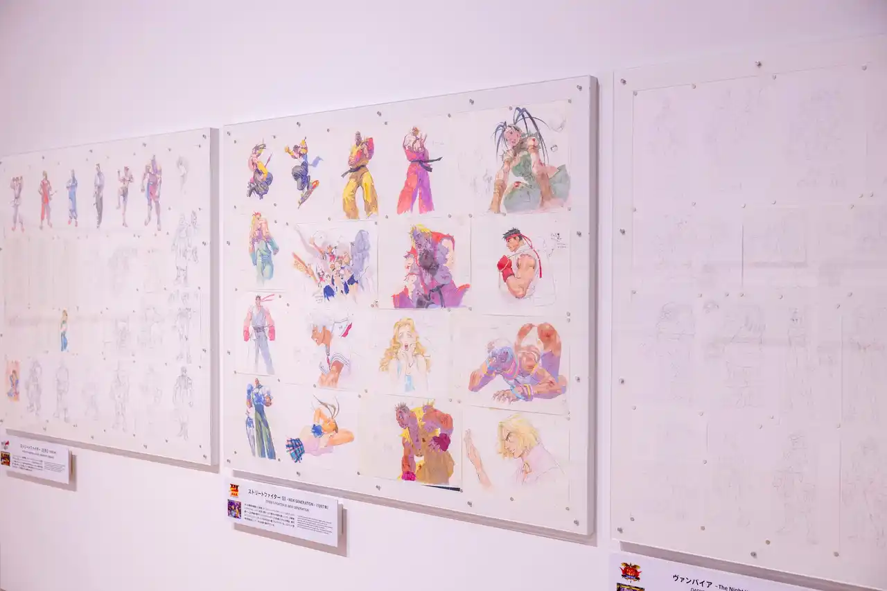東京会場では、「ストリートファイター」「ロックマンX」「ブレス オブ ファイア」「ヴァンパイア」「ファイナルファイト」「ジャスティス学園」「逆転裁判」など多くのシリーズから選定した |