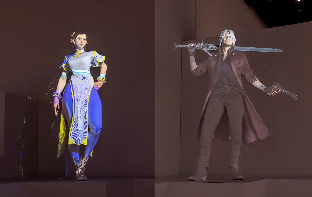 また、大阪会場以来の展示となる「バイオハザード・新ウォークスルー体験」コーナーや、名古屋会場以来となる「モンスターハンター 超立体図鑑」、「プロジェクションマッピング(春麗、ダンテ)」 |