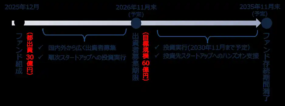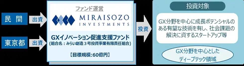 今後、都の出資を呼び水に、運営事業者において2026年11月末まで民間企業等からの出資を広く募っていくとともに、GX分野を中心に社会課題の解決を目指すディープテック・スタートアップへの投資を実行していきます。 |