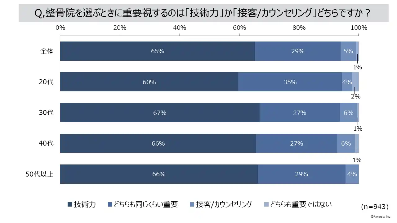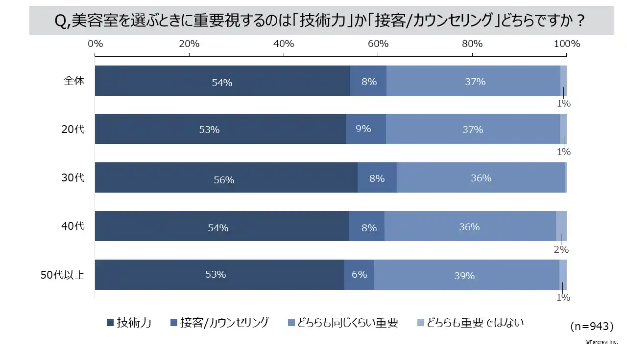 3.美容室、整骨院問わず店選びで「技術力」と「接客・カウンセリング」の双方が重要視されている |