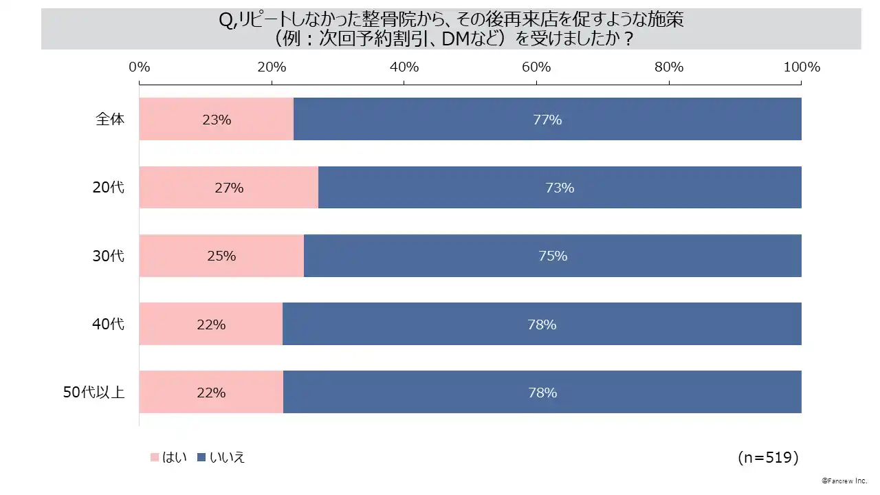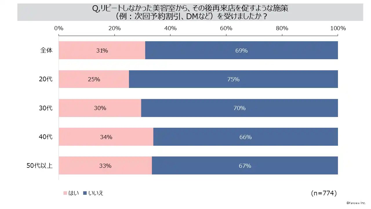 1. 美容室で69%、整骨院では77%の離脱客が、店舗から「再来店を促す施策を受けていない」と回答 |