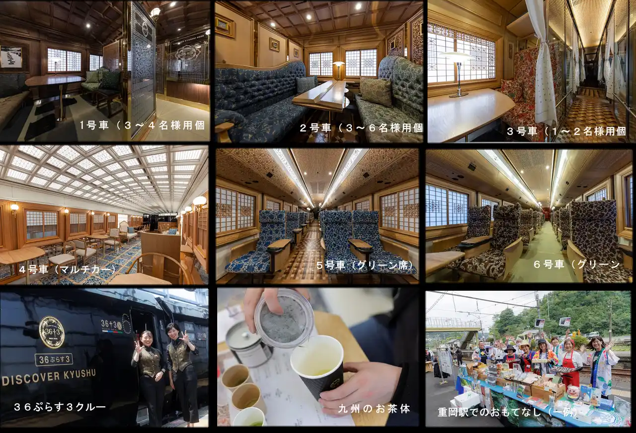 2026 年5月11日(月)運行分までは、以下の概要でご予約を承ります。 この機会に九州の歴史、風土、人など、九州のすべてが、ぎゅーっと詰まった“走る九州”「36ぷらす3」 での旅をお楽しみください。 |