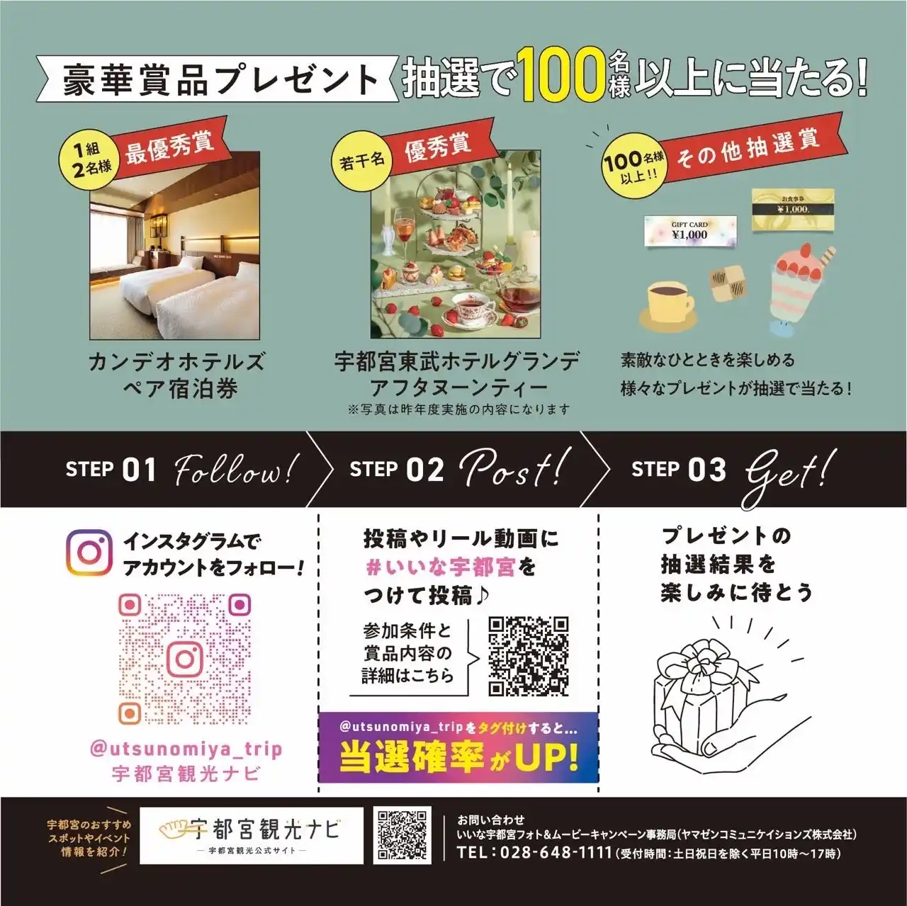 | 投稿に @utsunomiya_trip をタグ付けすると、当選確率がアップ▲ | |||