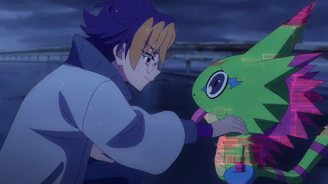 これまでのシリーズだと、主人公のパートナーが一番に進化して……という流れが王道だと思うのですが、『DIGIMON BEATBREAK』では進化=感情の到達点として描きたかったので、そこまでの積み重ねをしっかり描く必要がありました。トモロウとゲッコーモンがお互いを誤解し、ぶつかり合い、トモロウが兄との記憶を通して「自分が今、ゲッコーモンに同じことをしている」と気づく。そこで初めて、本当の意味で向き合い直せたときに進化が起きる--という流れにしたかったんです。だから、1クール全体を「二人がちゃんと信頼し合えるようになるまでの物語」と位置づけた結果、自然とあの位置に進化回が置かれた、という感覚ですね。 |