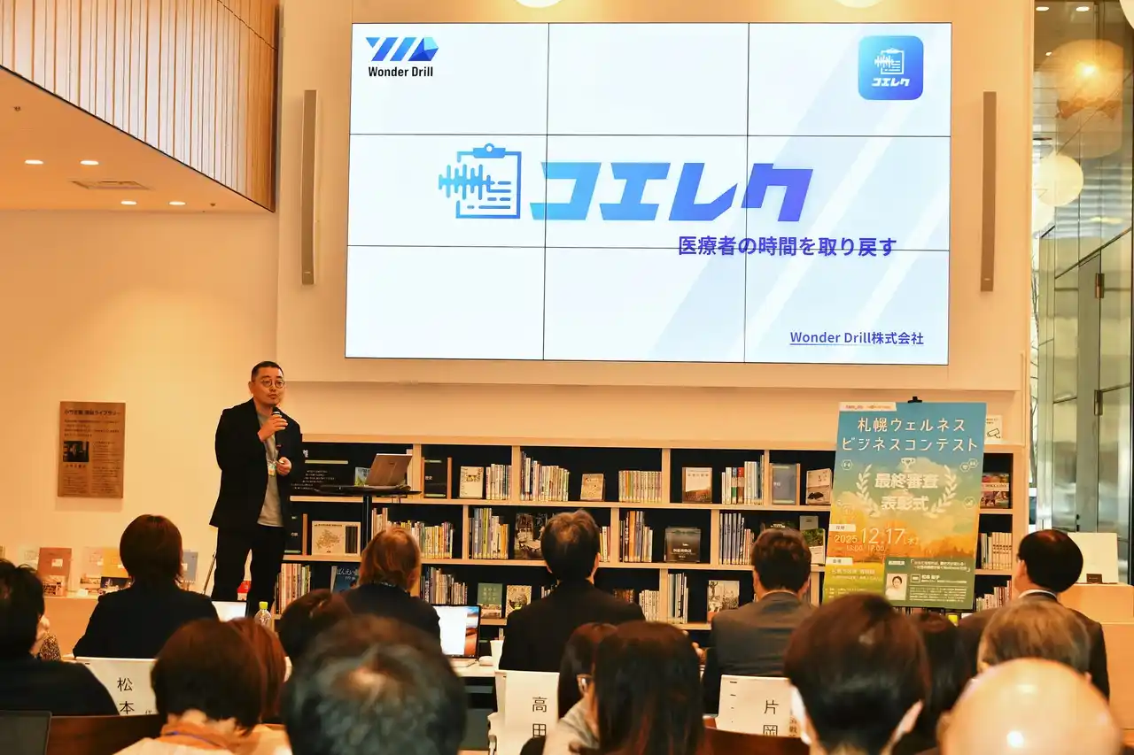 2025年12月17日、Wonder Drill株式会社(本社:北海道札幌市、代表取締役:平山 傑)が開発する医療記録AI「コエレク」が、公益財団法人ノーステック財団主催の「札幌ウェルネスコンテスト2025」において最優秀賞を受賞しました。