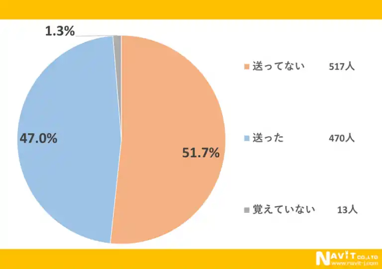 | 年賀状を送ったかどうかのアンケートの結果では「送った」という人が47.0%で半分を切るという結果になりました。年々年賀状を送る人が減ってきていると耳にしますが、半数以下というのは、ある意味ショッキングな数字だと思います。 | |||