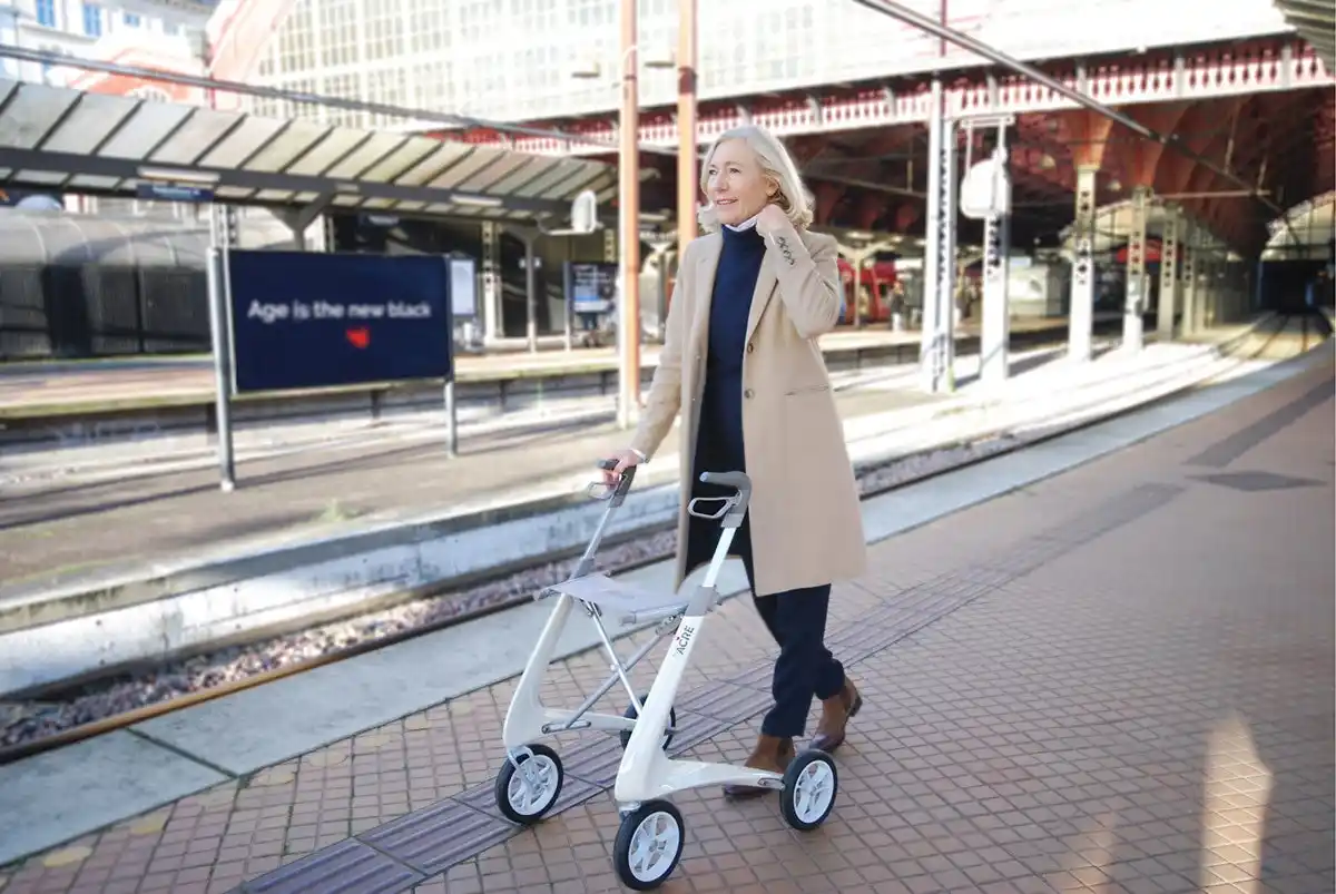 歩行を困難とする人々のお出掛けのきっかけとなることを目指して「心」と「身体」に作用し、毎日の移動を楽しく、快適にサポートする歩行器です。 |
