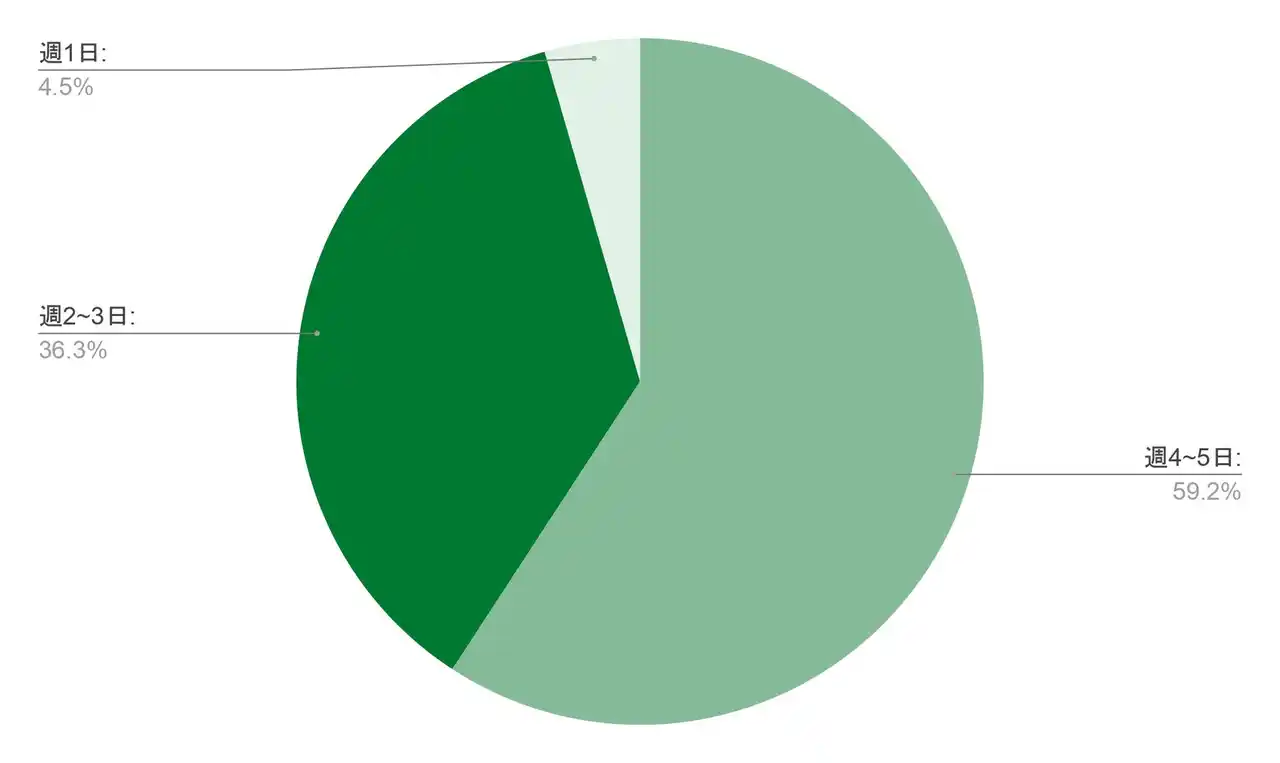 フルタイム志向の方: 週4~5日のフルタイム案件が59.2%と過半数を占めており、安定した収入を求める方に適しています。 |