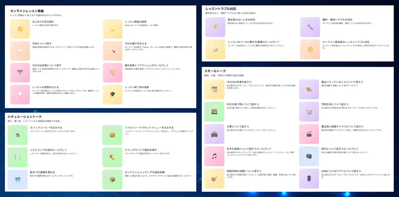 Kimini英会話はこれからも、英語を話す機会を最大化する学習体験を追求し続けます。ぜひ、新しいAIレッスンを搭載した「Kimini AI」を体験してください。 |