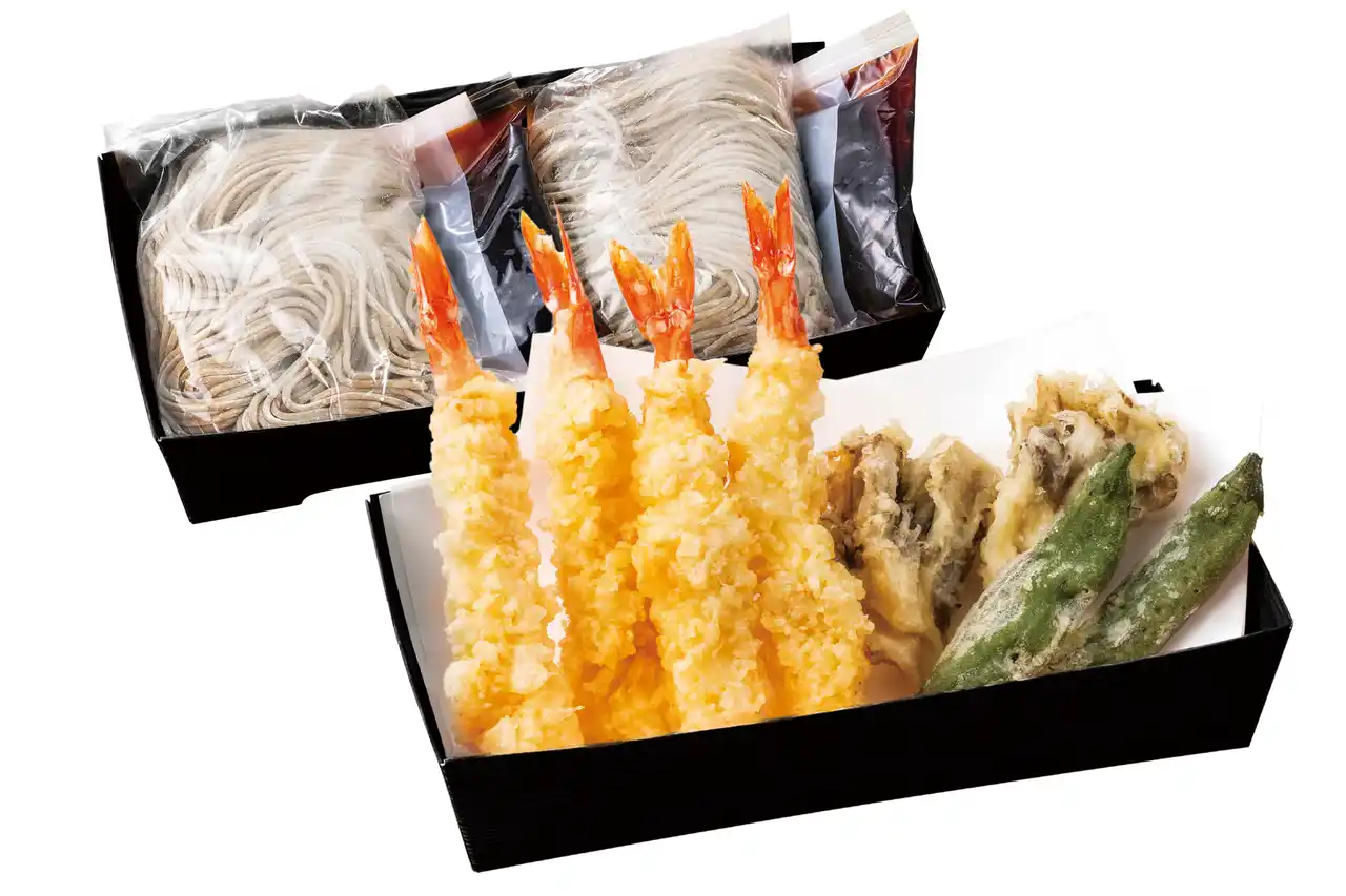 | 天丼・天盛り専門店ならではの天ぷらと年越しに欠かせないそばを、ご自宅でゆっくりとお楽しみいただけます。 | |||