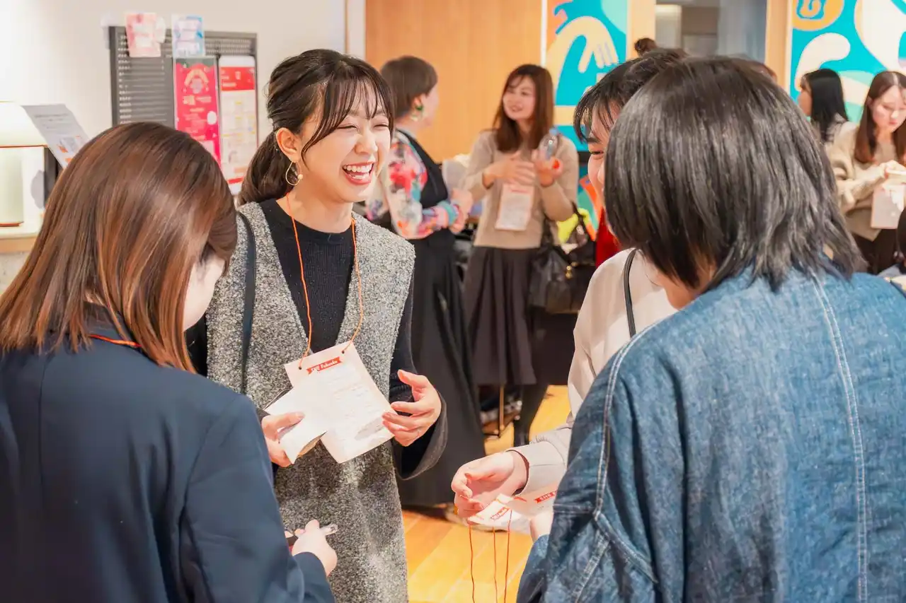 オープニングパーティーの後半には参加者同士の交流会を実施。 会場では自己紹介ビンゴシートを手に、「同じ県出身の方」「フリーランスの方」「子育て中の方」など、様々な共通点を見つけながら、新しいつながりが生まれ、積極的に声をかけ合う参加者で盛り上がりました。 |