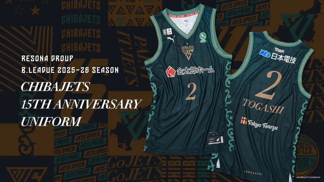 本ユニフォームは、クラブの歩みとホームタウン・船橋への敬意を込めて制作され、千葉ジェッツとともに築いてきた15年間の軌跡と、これからの未来を象徴するデザインとなっています。 |