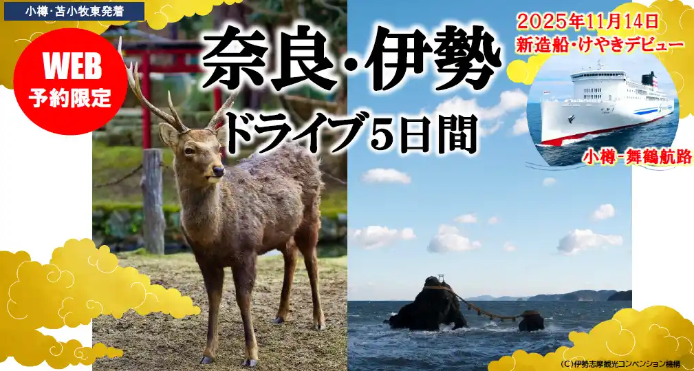 | ♦【プラン2】奈良・伊勢ドライブ<小樽港・苫小牧東港~舞鶴港・敦賀港> | ||||||||||||||||||||