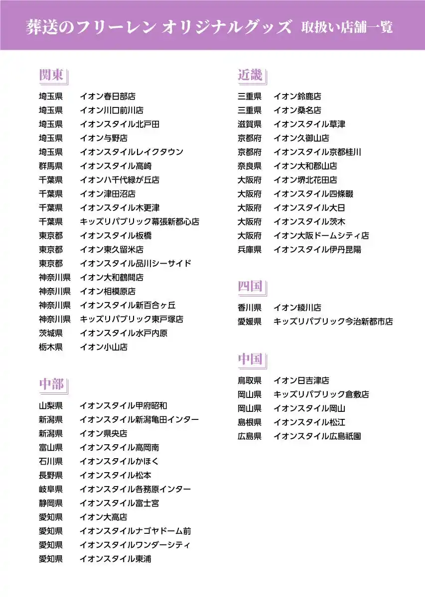 2026年1月1日(木)から、関東・北陸信越・東海・近畿・中四国の「イオン」「イオンスタイル」おもちゃ売り場 約50 店舗にて、TVアニメ『葬送のフリーレン』の描き起こしイラストを使用したイオン限定グッズを販売します。 |
