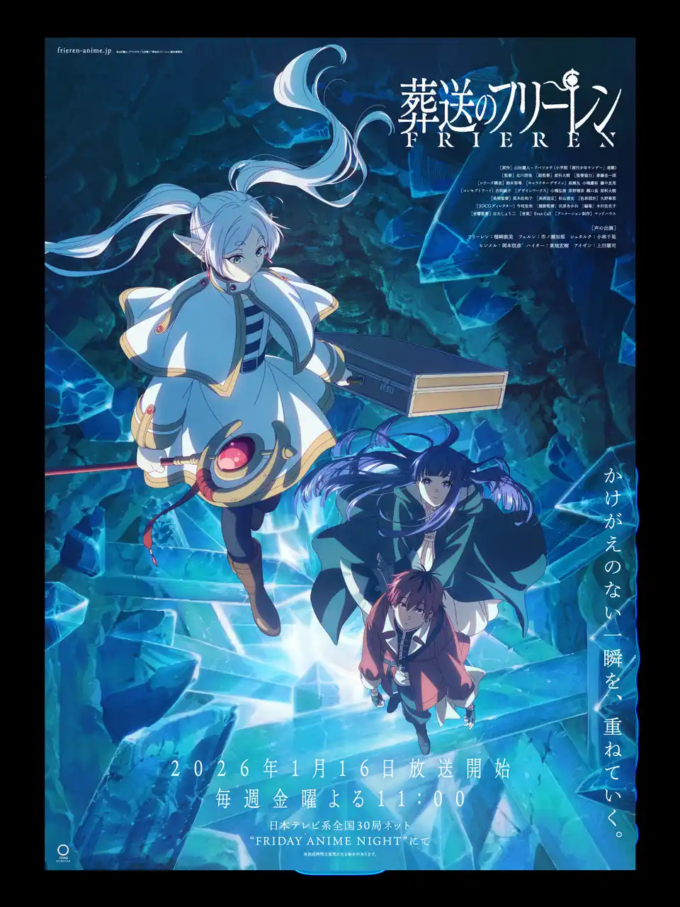 現在発売中のコミックスはシリーズ世界累計部数3200万部を突破!漫画ファンの間で旋風を起こしている。それを原作とするTVアニメは2023年9月から2024年3月まで放送され、国内外で幅広い、数多くのファンを獲得し、大きな反響を呼んだ。そしてこの度、待望の第2期が2026年1月より日本テレビ系で放送決定!フリーレンの「人の心を知る旅」が、再び始まる――。 |