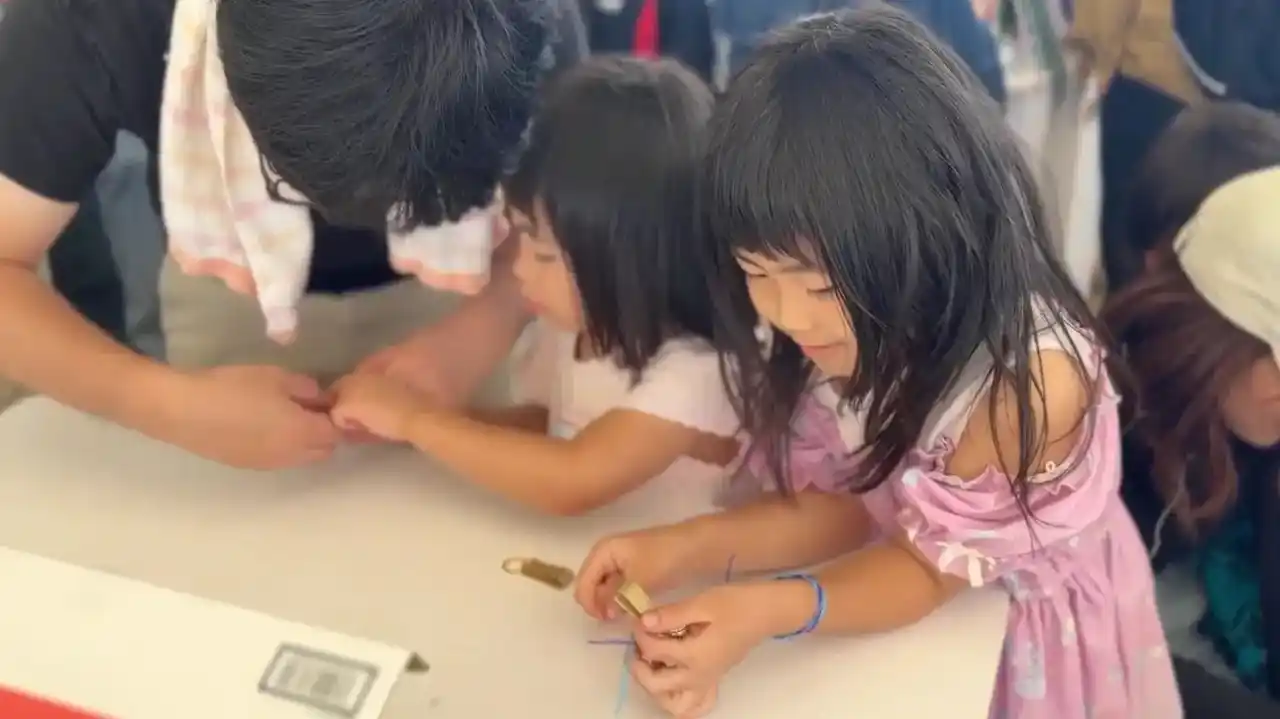 年間3,000種類以上のゴム部品を製造する錦城護謨は、製造工程で生じるゴムの端材を活用した「ゴムのミサンガ」づくりを実施しました。本ワークショップは、大阪・関西万博の会期中、シグネチャーパビリオン「いのちの遊び場 クラゲ館」においても行われ、こどもたちは色や形の異なる端材を自由に選び、五感を使ってものづくりを楽しみながら、創造の喜びや資源循環の大切さに触れる機会となりました。 また、同社はものづくり実行委員会の一員として、万博期間中にシグネチャーパビリオン「いのちの遊び場
