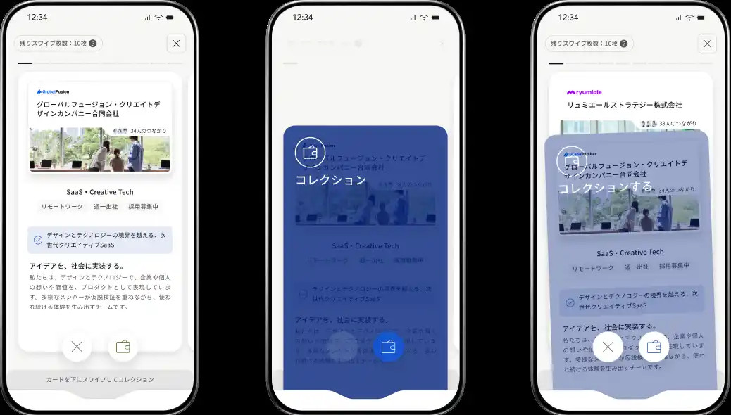 | Heygoodでは、ユーザーはまず気になる企業の情報が記載された「キャリアカード」をアプリ上で収集します。 | ||||||||||||||