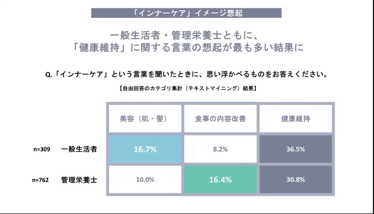 インナーケアを"美容のためのもの"と捉える生活者と"食事を気遣うこと"と捉える管理栄養士 |