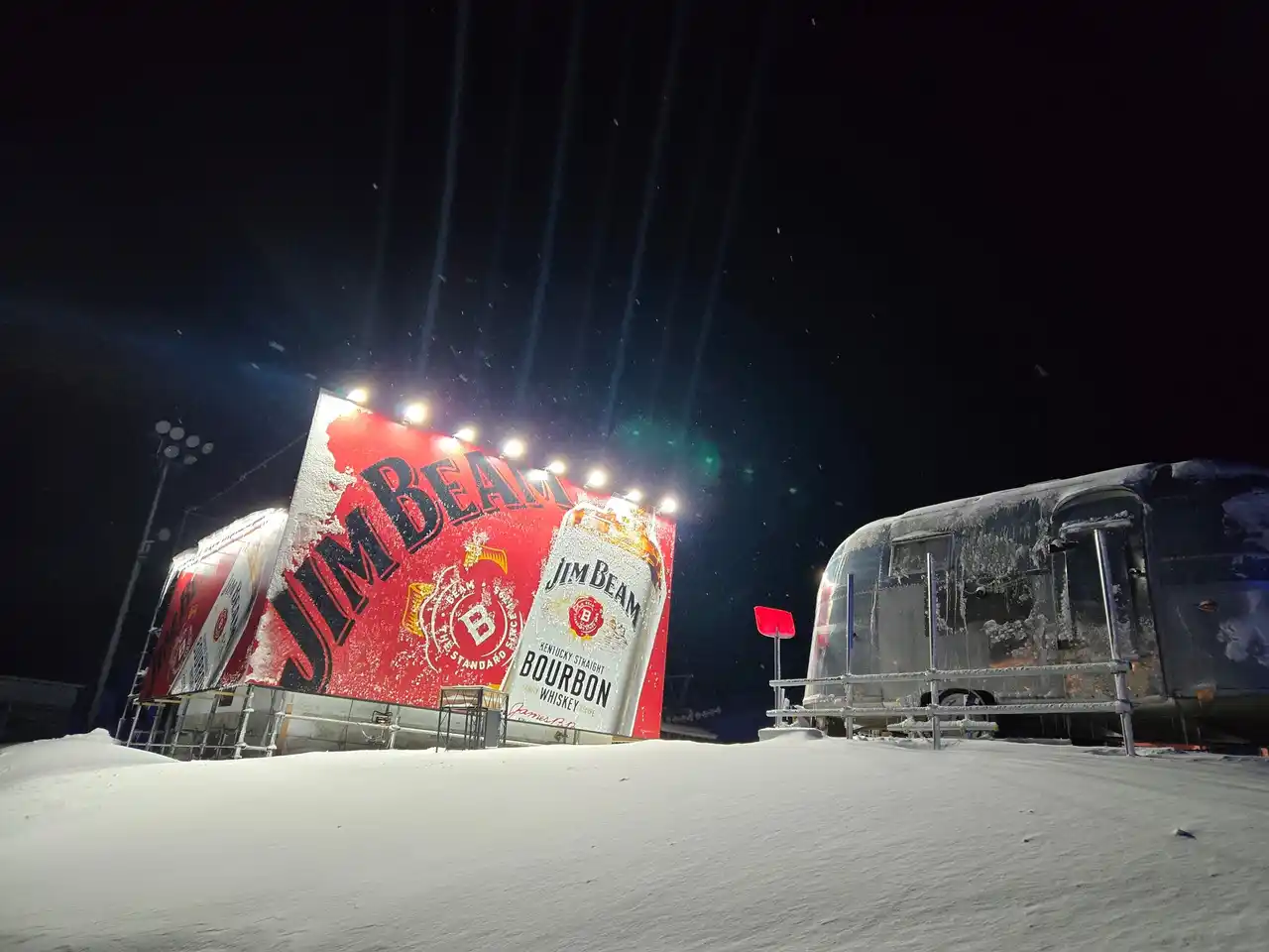 本イベントは、日中のスキー場営業から夕暮れ時の「特別な体験」への転換を象徴的に演出します。毎日16時になると、会場の囲いが「ジムビームロゴ入り」の特別仕様へと切り替わり、一気にバーボンの世界観へと変貌。雪景色の中で大人が楽しむ空間として、昼間のアクティブなスキー場の雰囲気から、夕方以降の落ち着いたひとときへと移り変わります。この時間帯を境に「ジムビームモーメント」が始まり、訪れたゲストは五感でバーボンの世界を体感することができます。 |