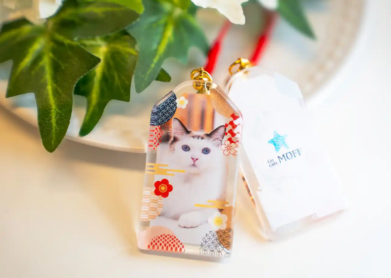 MOFFでは、どうぶつとの出会いがその場限りの体験で終わるのではなく、 日常の中でもふと心をあたためてくれる存在であってほしいと考え グッズ制作にも取り組んでいます。今回のお守りは、季節を感じられるアイテムとして、そして新しい一年の始まりに、ご来園いただいたお客様が笑顔で前を向けるきっかけになればという想いから生まれました。猫カフェで過ごした時間や、お気に入りの猫と出会った瞬間の記憶が、 新年を迎える日常の中でそっと寄り添い、たくさんの“福”を運んでくれる存在になってくれたら嬉しいです。 |
