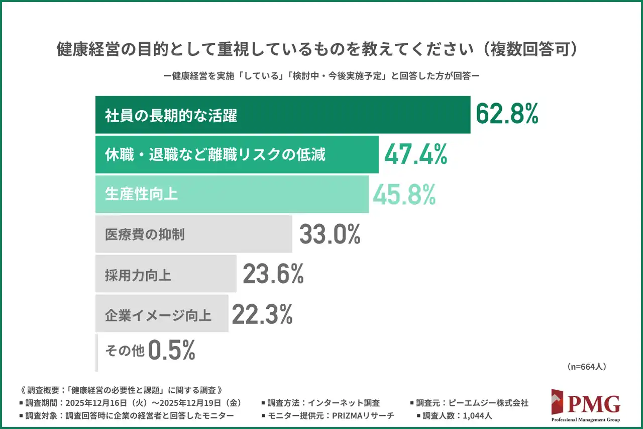 PMGグループでの「健腸ナビ」導入と連動し、企業の経営者を対象に「健康経営の必要性と課題」に関する調査を実施しました。 |