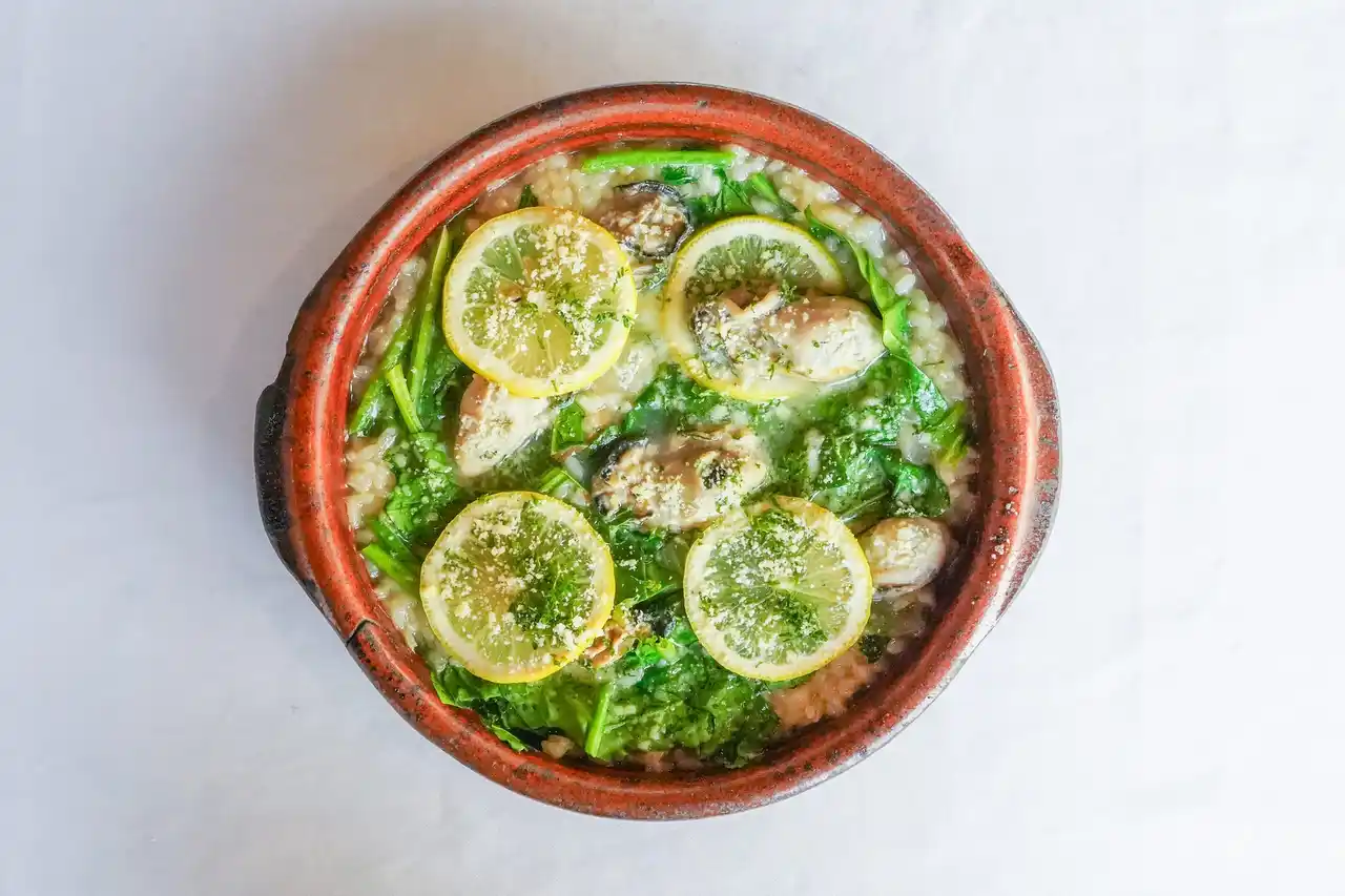 レモンを効かせたスープのスペイン風雑炊「カルドソ」。スープをたっぷり含んだお米が体を芯から温めてくれます。チーズをたっぷりかけ、洋風に仕上げたカルドソは、寒い季節にぴったりな一皿です。 |