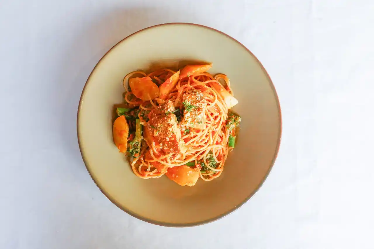 とろけるように柔らかく蒸した豚バラ肉と、旬の蕪・ブロッコリーがごろっと入って食べ応え抜群のパスタ。コクのあるトマトソースと冬野菜の甘みがやさしく広がります。パンとの相性もGOOD☆ |