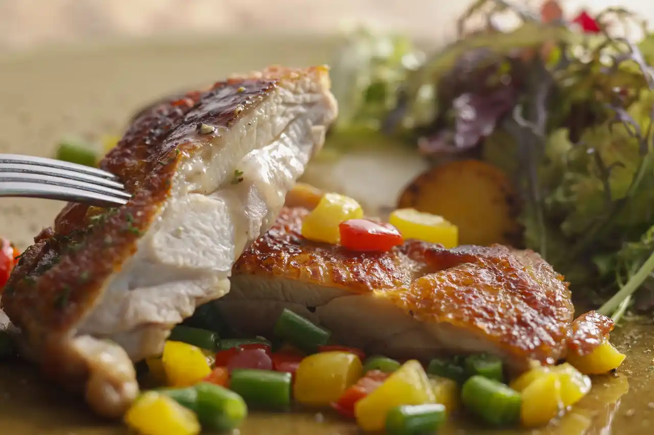 使用するのは、きめ細やかな肉質とコクのある旨みが特長の長州どり。 皮目はじっくりと時間をかけて焼き上げ、香ばしくパリッとさせました。 中はしっとりとした食感を保ち、噛むほどに鶏本来の美味しさが広がります。 |