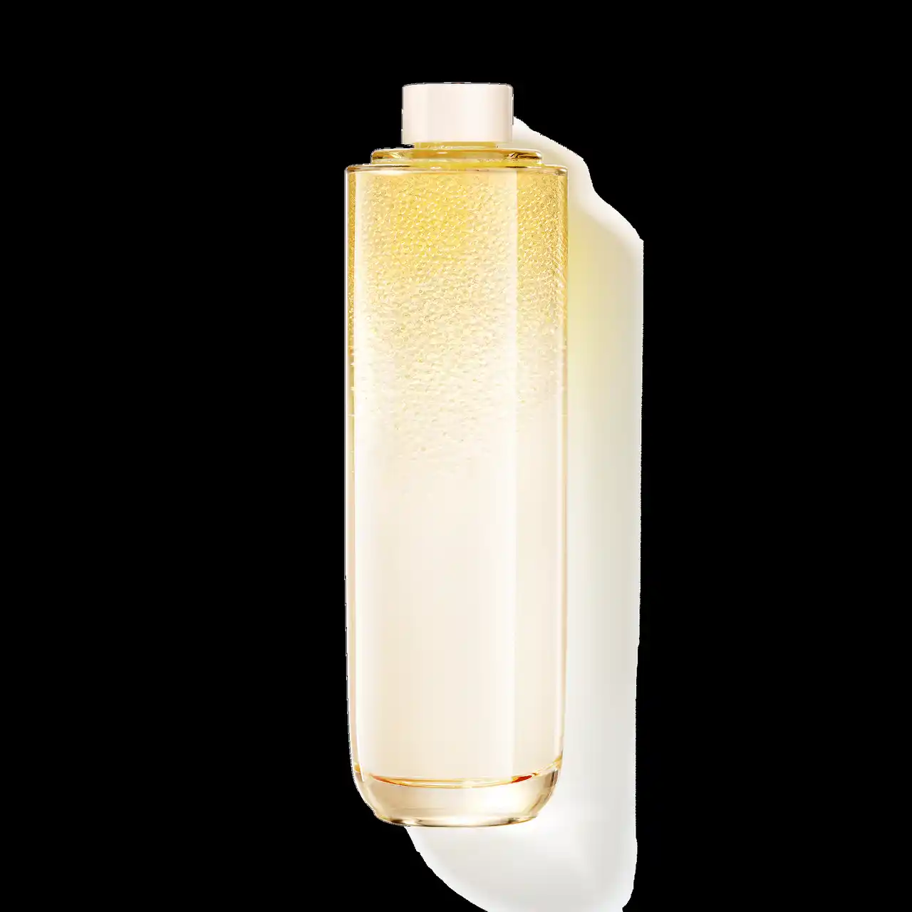 3年にわたる研究開発を経て誕生したゲラン独自のフォーミュラを採用。ローションには、オーキッドオレオ コンセントレート¹を閉じ込めた無数のゴールデン マイクロカプセルと、肌表面をなめらかにし光をもたらすソリューションの二つの要素が見事に共存しています。両者が融合することで、肌を包み込むようにシルキーなヴェールを形成し、内側から輝くようなツヤを引き出します。その中心で、ゴールド クォンタム テクノロジーが若々しい印象を呼び覚まします。 |