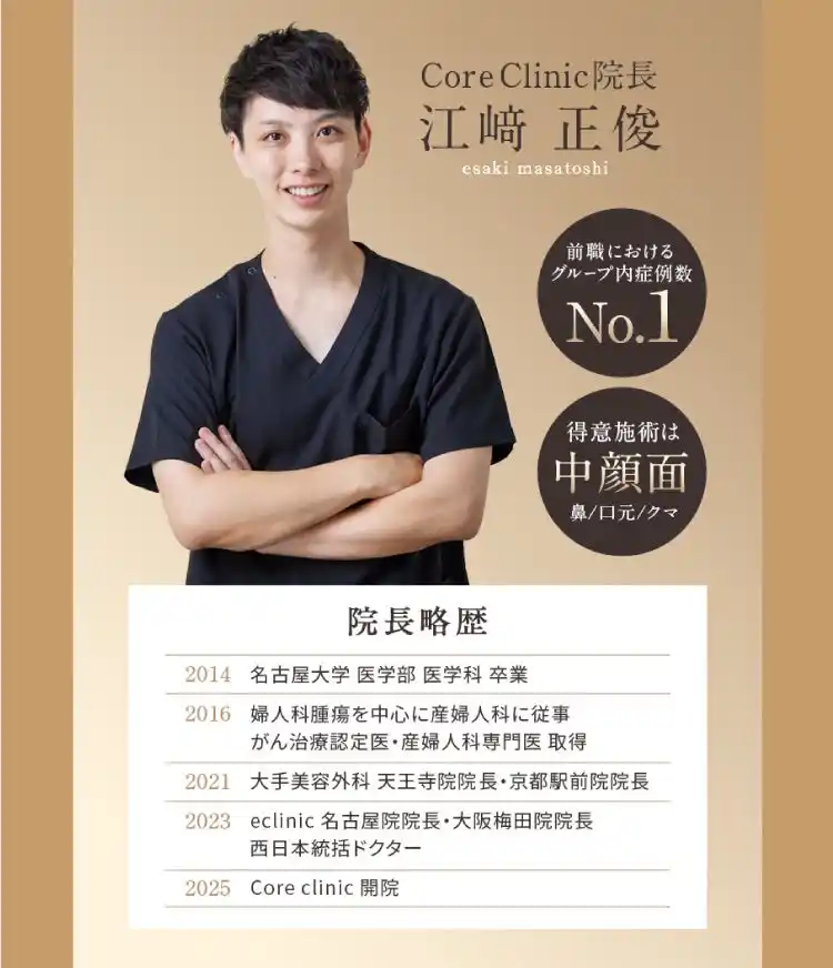 院長の江崎正俊がカウンセリングから施術までを一貫して担当しており、特に鼻や目元、口元といった高難易度の中顔面施術を得意としているため、ただ注入するだけでなく顔全体のバランス、中顔面の立体構造を意識した施術を行っています。 |