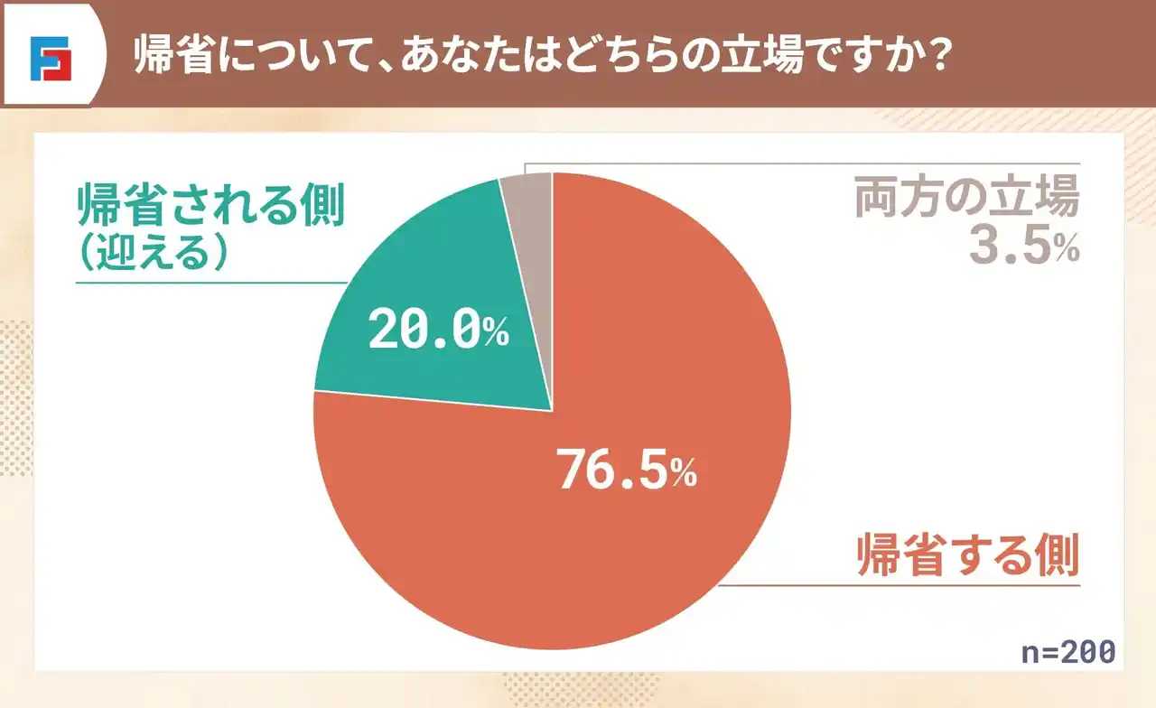 今回の調査は、「帰省する側」にあたる人が76.5%を占めており、その意見が多く反映された結果となっています。 |
