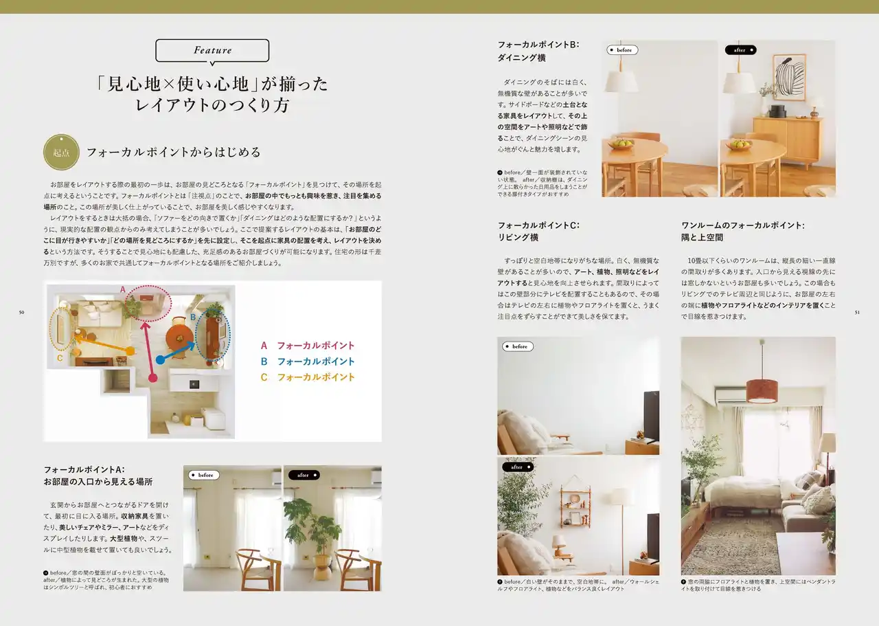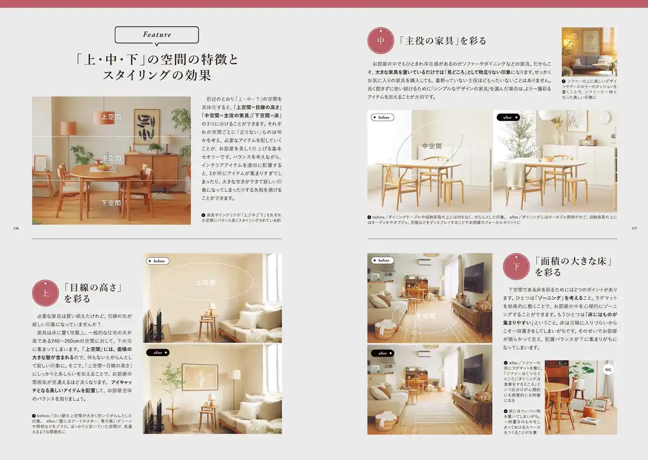 | 加えて、「好みのインテリアを知る方法」をはじめ、すぐに真似できる「レイアウトのコツ」「ディスプレイのアイデア」「片づく収納術」「カラーの取り入れ方」など、より踏み込んだ内容を収録。その結果、本書は前著の1.6倍を超える予約数を集め、発売前から大きな反響を呼んでいます。 | |||||||||