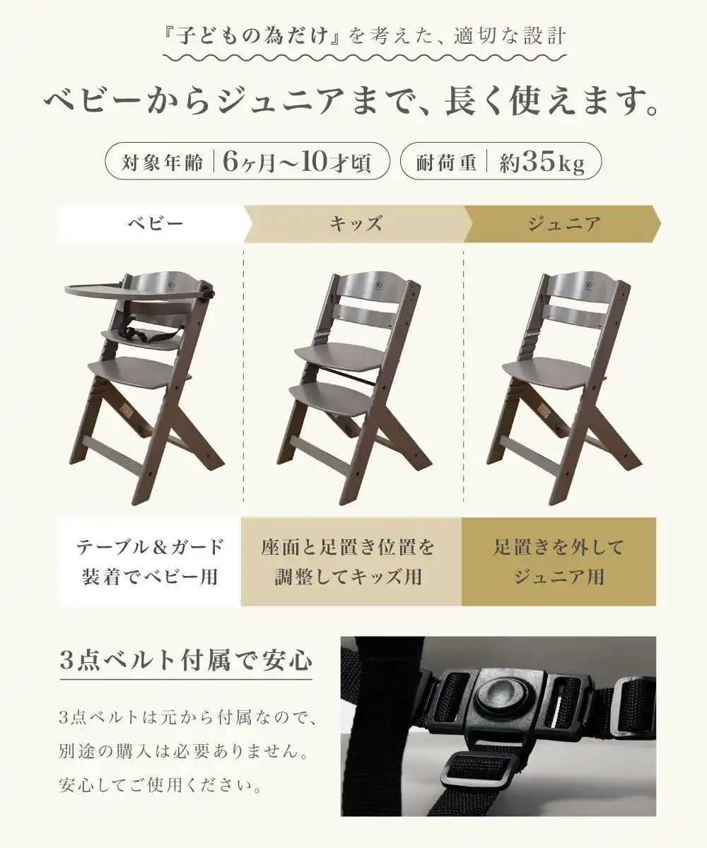 子どものためのハイチェアだからこそ安心して使いたい。 |