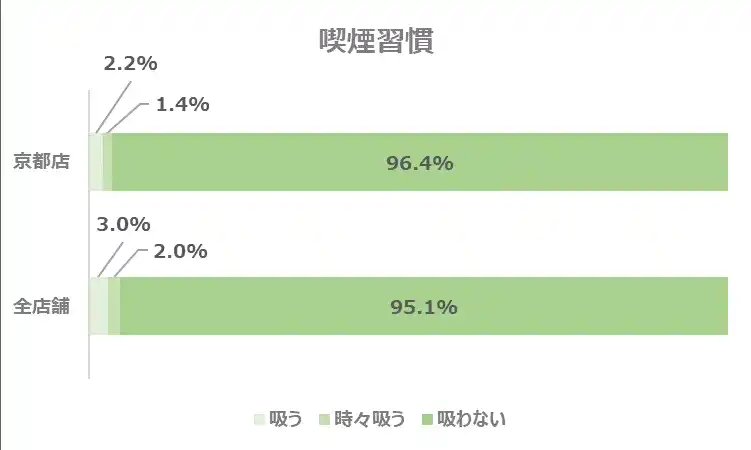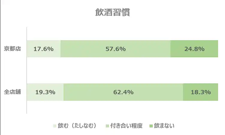 全店舗と比較すると、飲酒の習慣のある方がやや少ない結果となりました。 |