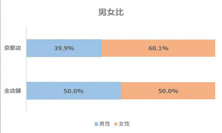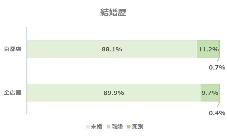 全店舗と比べると、結婚歴のある方の割合がやや高めでした。 |