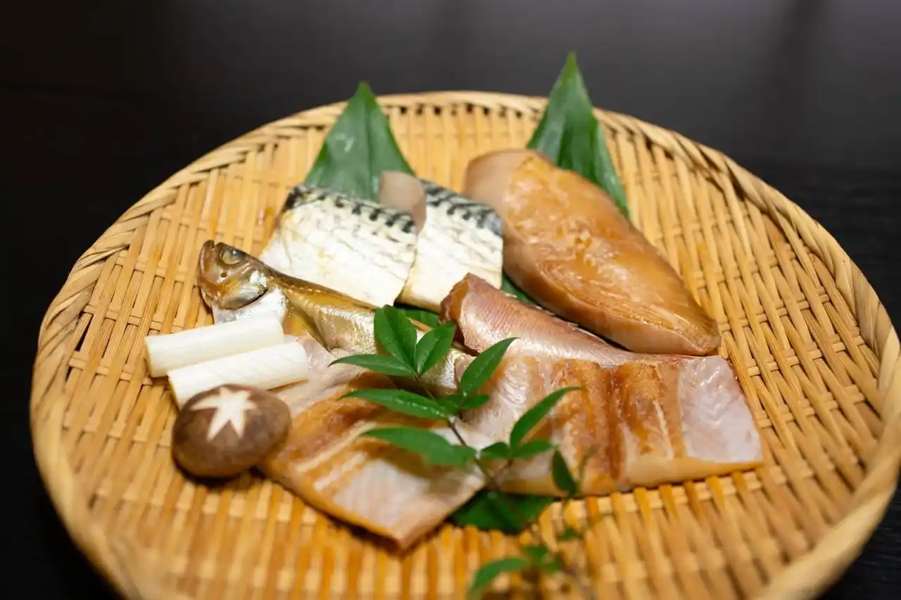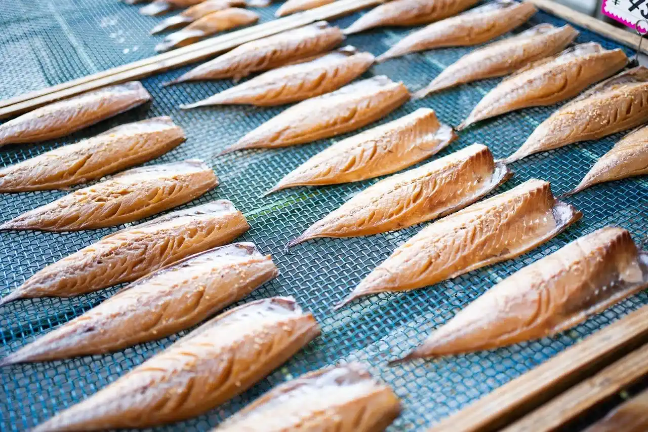 その中でも「若狭おばま醤油干し」は、一般的な塩干しやみりん干しとは異なり、醤油ベースの特製ダレに魚を軽く漬け、一晩干すことで旨みを凝縮させた、香ばしさが特徴の加工食です。 |
