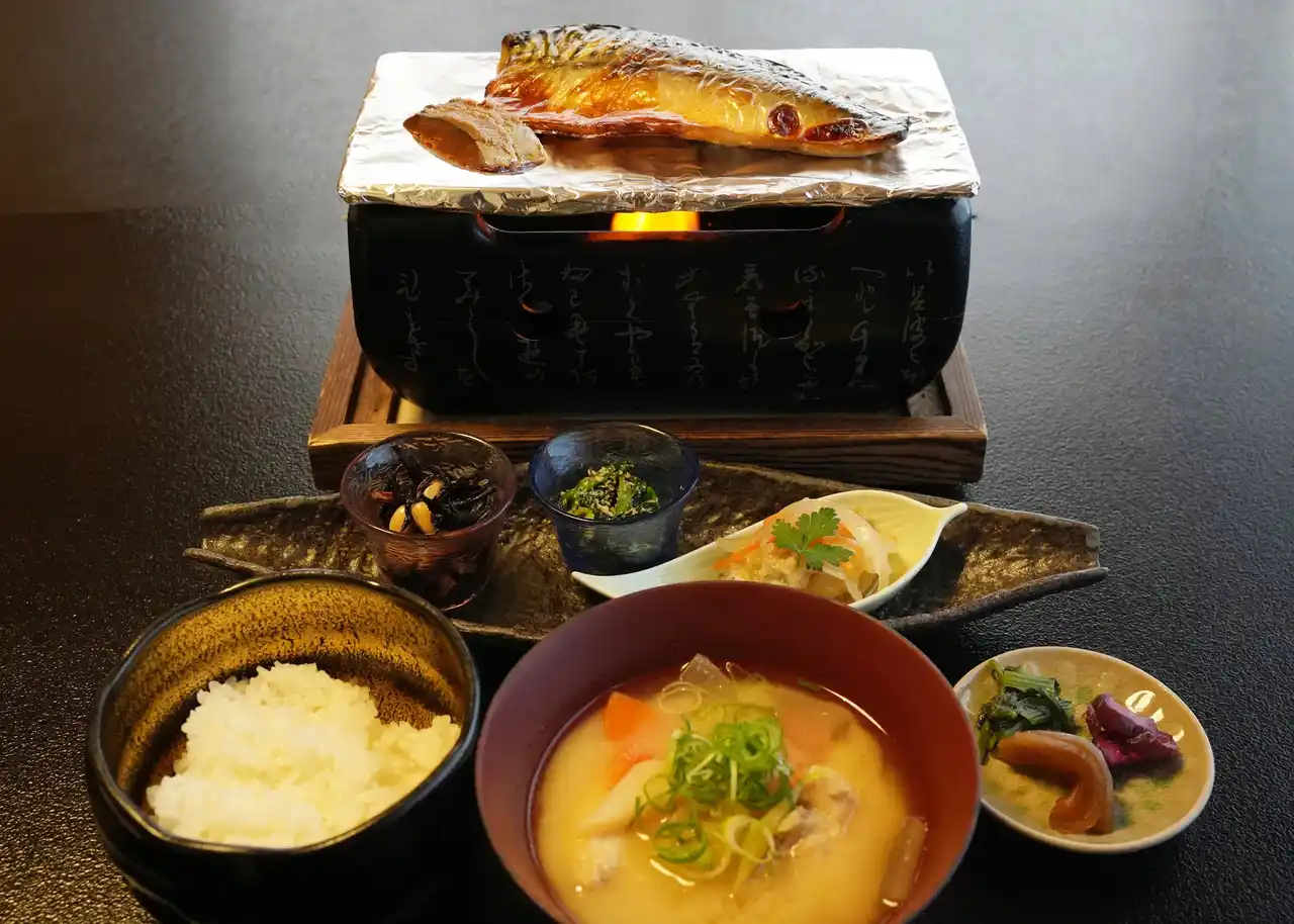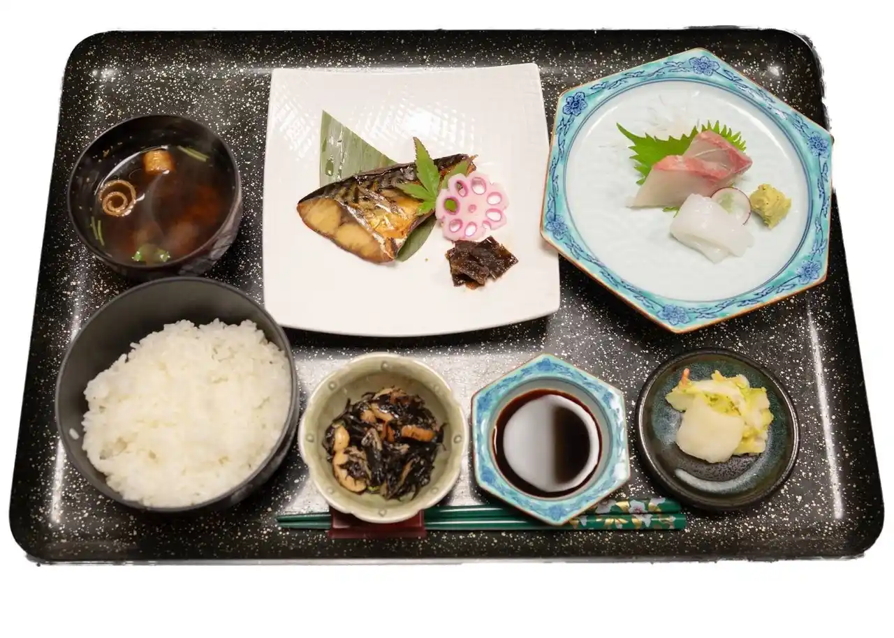 地元住民に親しまれている食堂で、「塩焼き」と「醤油干し」を食べ比べながら、小浜ならではの味の奥深さを実感できる定食です。 |