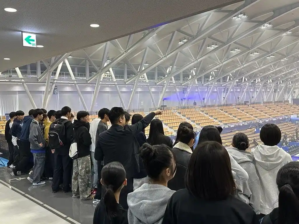 | 特別講座を受けている丸岡高校の生徒、約40名がセーレン・ドリームアリーナで行われている実際の試合を観戦。 | |||||||||||||||
